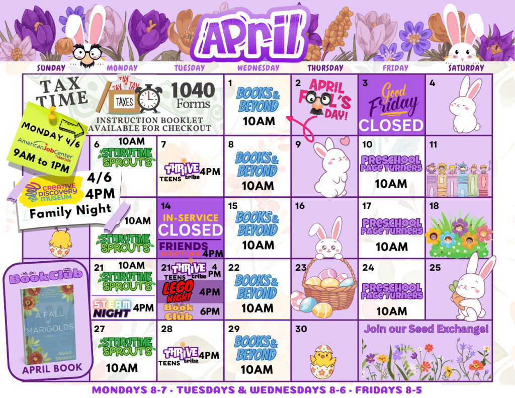 We’ll be back to normal hours on Wednesday, April 15, ready for you to explore, create, and enjoy your favorite books. Thank you for understanding!