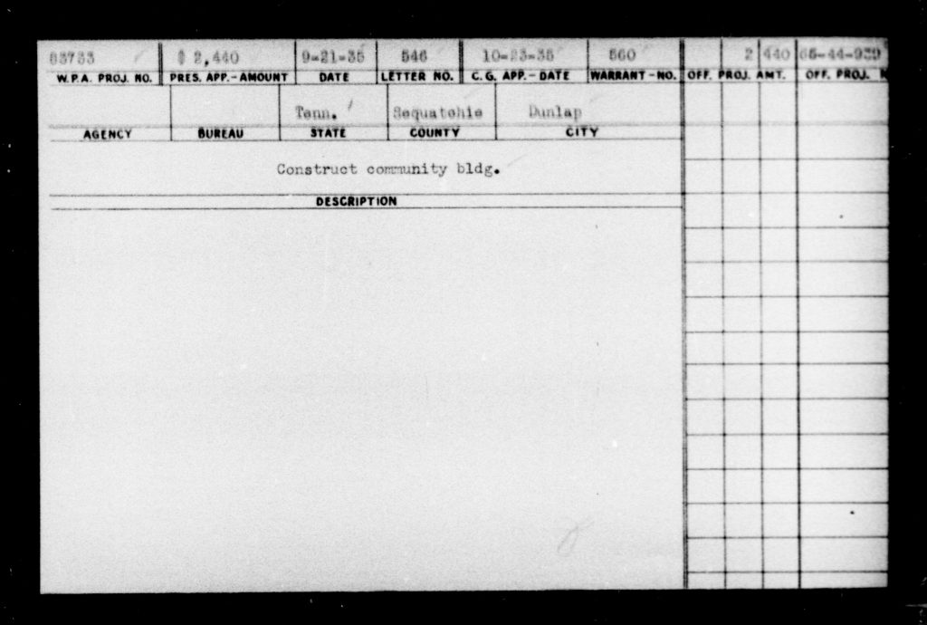 ⁵ Federal Works Agency, Works Projects Administration, Office of the Commissioner, Project Application Reference Cards, Record Group 69, Reel 65, page 698, NAID 232261494, National Archives. from https://catalog.archives.gov/id/232261494?objectPage=698